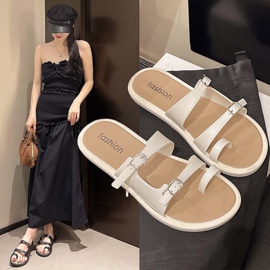 Skridsikker sål: Udstyret med en slidstærk og skridsikker sål, giver disse tåsandaler ekstra sikkerhed på glatte overflader som strand, poolområder eller byens gader. Den 2 cm høje hæl sikrer samtidig en let løft og stabilitet, hvilket gør dem praktiske til både udendørs og indendørs brug.