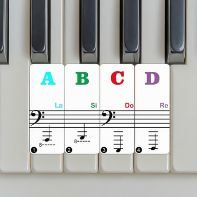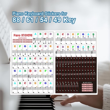 Klistermærkerne er tydelige og nemme at læse og gør det nemmere at finde og huske nodepositioner. Perfekt til begyndere og velegnet til klaverer med 88/61/54/49 tangenter.