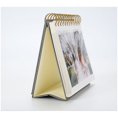 Kalenderdesignet kan stå stabilt på skrivebordet, så du kan bladre og skifte billeder efter eget ønske. Den stabile vedhæftning mellem omslaget og de indvendige sider sikrer høj kvalitet.Læs mere om produktet