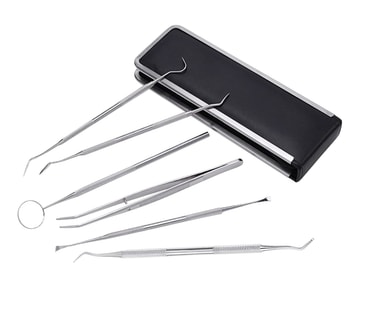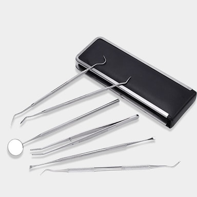 6 instrumenter: Sættet muliggør omfattende pleje af dine tænder. Det indeholder 6 instrumenter af samme type, som tandlægen bruger. Skraber med to ender. Pincet og spejl er lavet af kirurgisk rustfrit stål. Få et bedre udsyn til munden med spejlet, så du nemt kan se tandsten på bagsiden eller forsiden af tænderne.