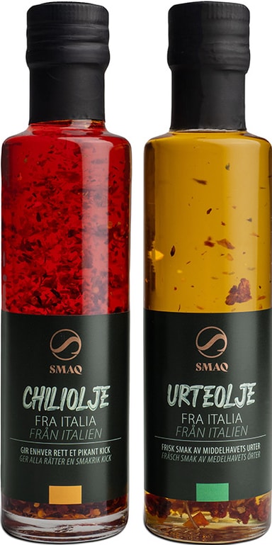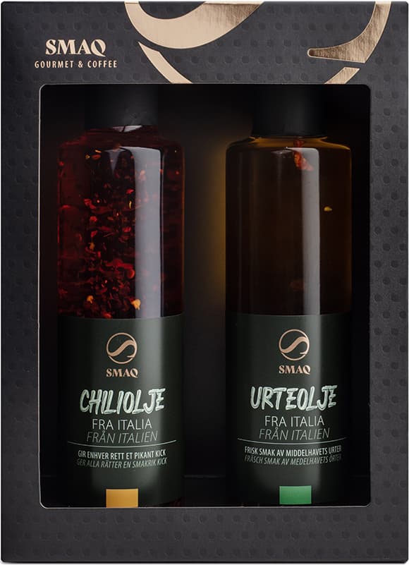 Tilføj autentiske italienske smagsoplevelser til din madlavning med Smaq oliegavesættet 8014. Det indeholder en italiensk chiliolie og en middelhavsolie med urter, perfekt til at løfte bøffer, pizza og meget mere. De leveres i en elegant gaveæske.Læs mere om produktet