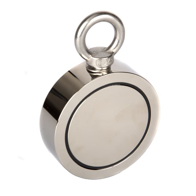 Supermagnet til magnetisk fiskeri med 300 kg løftekraft på hver side. Magneten er lavet til at blive trukket langs bunden med en magnet på begge sider. Magneten er forniklet og leveres med en monteringskrog i rustfrit stål. Vi anbefaler at bruge reb fra 10-30 meter med en karabinhake i enden, gevindlim til kroge og handsker. Se under anbefalet tilbehør.PS! Produktteksten er maskineoversat fra norsk.