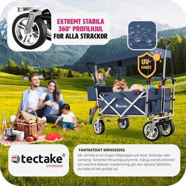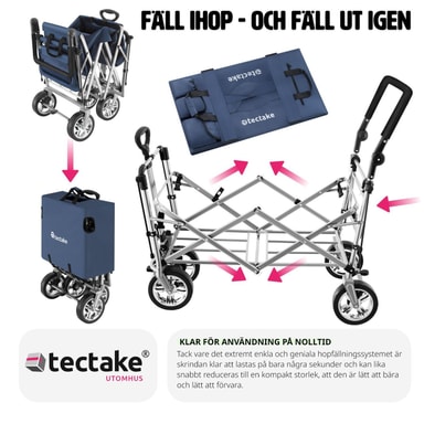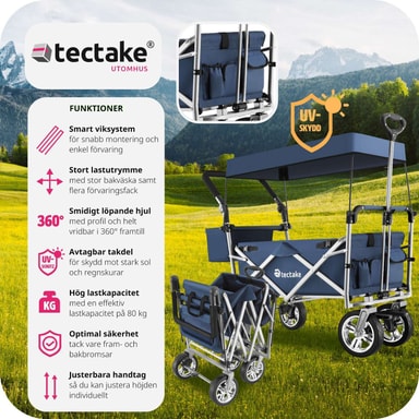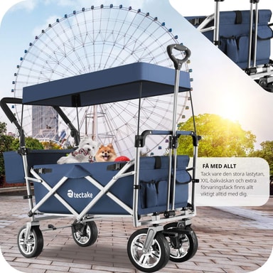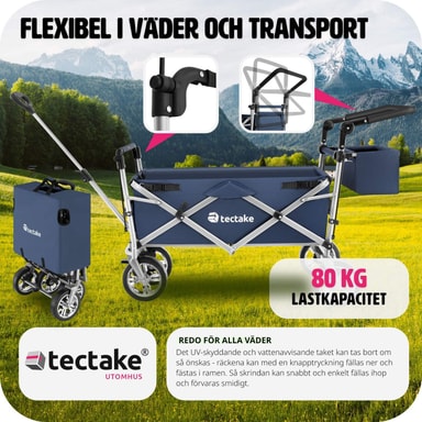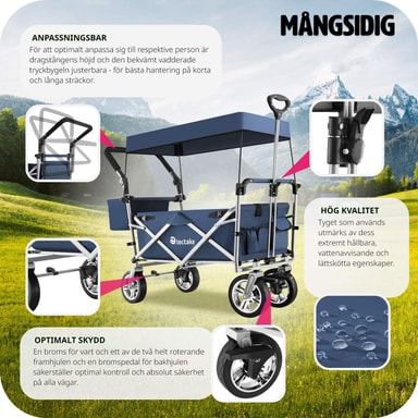 Den foldbare konstruktion gør det utrolig nemt at klappe sammen og opbevare vognen, hvilket sparer dig både tid og plads. Med et robust stålstel og slidstærkt polyesterstof kombinerer denne trækvogn letvægtsdesign med holdbarhed. Du behøver ikke bekymre dig om stænk fra mudder eller regn, da materialet er vand- og smudsafvisende samt nemt at rengøre.