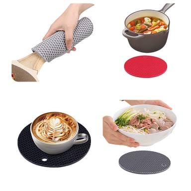 Skridsikkert design: Den skridsikre overflade på disse måtter sikrer, at dit køkkengrej og dine fade forbliver sikkert på plads. Det teksturerede design forhindrer glidning og forskydning og giver en stabil base selv for de tungeste genstande. Denne funktion er især nyttig, når du serverer varme væsker eller delikat mad, hvilket minimerer risikoen for spild og ulykker. Nyd øget sikkerhed og bekvemmelighed i dit køkken og spiseområde.