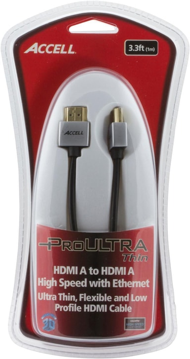 ACCELL ProULTRA Tyndt, HDMI-kabel, HDMI High Speed med Ethernet, 19-benet ha-ha, 4K, Ethernet, 3D, returlyd, 1m, sort