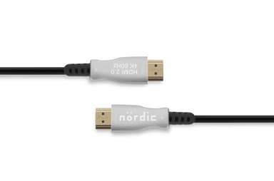 Active optical cables with Silicon Line technology do not require an external power source to convert and transmit electrical signals as optical signals and offer many advantages over conventional copper connections. They are much lighter and more flexible than copper for high bandwidth applications, have a longer transmission distance and no susceptibility to electromagnetic interference (EMI). The fiber cable has the same standard HDMI connectors and this means that you can connect it like a normal HDMI cable to your TV and PC or other devices. In order to meet certain specifications such as EDID and HDCP, the cable is a hybrid of OM3 Multimode 4 conductor fiber and 7 conductor copper cable.