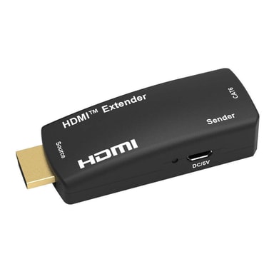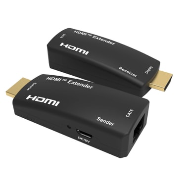 NÖRDIC SGM-123 udvider HDMI-signaler op til 50m med CAT6 TP netværkskabel. Opløsning op til 1080p ved 60Hz. Produktet består af en sender og en modtager, som begge får strøm fra en USB-oplader (medfølger ikke). To USB-kabler medfølger. Mål: 62x27x17mm Vægt: 17 + 17g