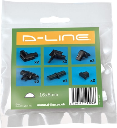 Dette D-LINE adaptersæt indeholder 13 påklipsbare dele til 16x8 mm kabelkanal, som hjælper med at skabe en glat og pæn finish langs vægge og møbler. Designet til nem installation og lang holdbarhed.Læs mere om produktet
