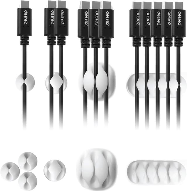 DESIRE2 Cable Clip Tidy 10-pakken muliggør praktisk kabelstyring. Takket være 3M klæbeoverfladen gør du ikke skade mod overflader, når du fjerner kabelstyringen.