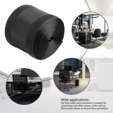 Kabelbeskyttelse er en nem måde at beskytte kabler og ledninger på tæpper. Betrækket har et stærkt greb, kan skæres til i passende længde efter dine behov og kan også genbruges mange gange.