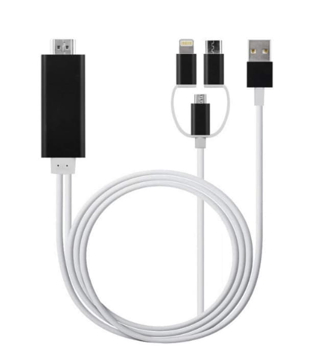 Super smart 3-i-1-design: Denne HDMI-adapter kombinerer Lightning + Micro USB + USB-C mobilstik i et kabel! Det understøtter spejling af det indhold, du har i din mobiltelefon på et HDMI-udstyret tv, skærm eller projektor - uanset hvilken forbindelse din specifikke mobilmodel har.