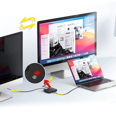 Smart dobbeltfunktion: Adapteren muliggør en pålidelig to-vejs omskiftning og sikrer en stabil signaloverførsel. Brug som HDMI-splitter til to skærme eller som HDMI-switch til to inputenheder.