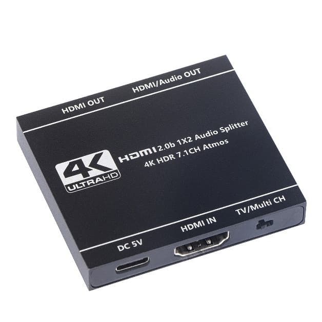 Multifunktionel HDMI-splitter 1 i 2 ud : Denne splitter understøtter ekstraktlyd, den har 2 tilstande. Mode 1- TV-tilstand, dupliker/spejl det samme billede for begge skærme Mode 2- Multi-tilstand, output til én HDMI-skærm og én HDMI-højttaler. Understøtter LPCM 7.1CH, DOLBY, TRUE HD, DTS-HD HDMI Audio.