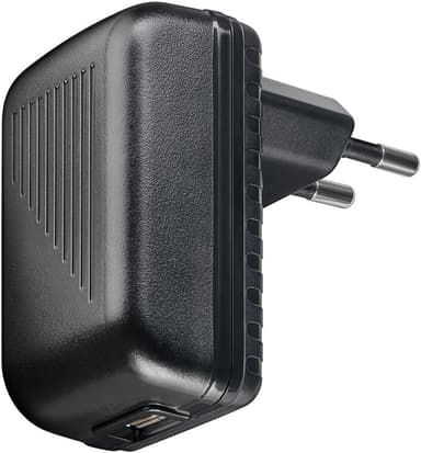 Leveringen omfatter også en 5 V strømforsyningsenhed og et mikro-USB-kabel