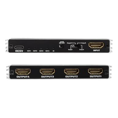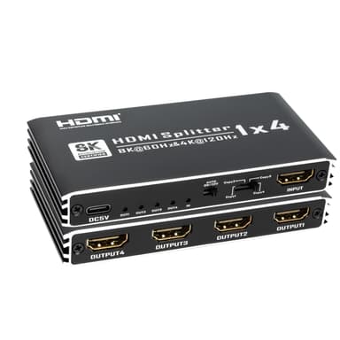 Denne splitter lader dig tilslutte én HDMI-kilde til op til fire skærme samtidig med fuld understøttelse af 8K@60Hz og 4K@120Hz. Med HDMI 2.1, HDR10, HDCP 2.3 og support for avancerede lydformater leverer den højeste ydelse til både professionelle og private miljøer. EDID-indstillinger sikrer korrekt kommunikation med hver skærm, mens det robuste aluminiumshus garanterer holdbarhed og pålidelighed.Specifikationer