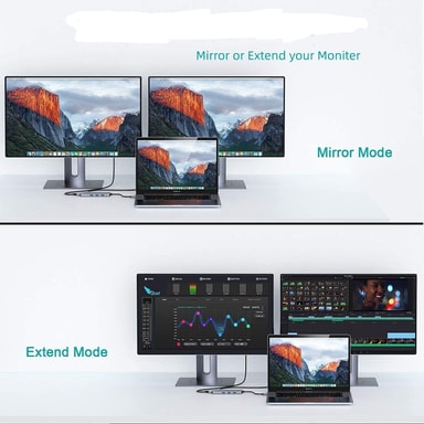 NÖRDIC displayport splitter tar emot displayport signal från din dator och delar den till två anslutna monitorer. Produkten har funktioner mirror och extended för Windows och Mirror för MacOs. Input signal från PCn ska ha stöd för DP1.4 för att externa monitorer ska klara 4K60Hz. Om input signalen är DP1.2 då blir resolutionen 2x4K 30Hz.