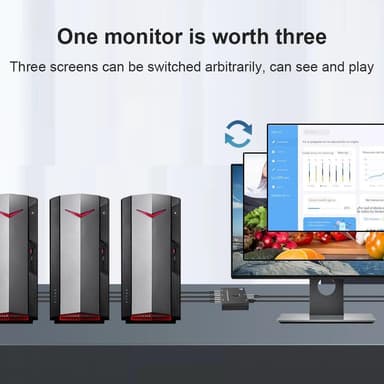I switch-tilstand kan du vælge, hvilken af dine tre kilder, der skal vises på skærmen med et enkelt tryk på en knap, og i splitter-tilstand kan du vælge, hvilken af de tre tilsluttede skærme, der viser din kilde. Bemærk, at kun én skærm er aktiv ad gangen i opdelt tilstand.