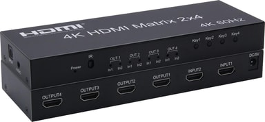 Med NÖRDIC HDMI-switch kan du dele fire skærme med to HDMI-videokilder. Switchen har to indgange, der hver understøtter 4K-opløsning. Switchen er bagudkompatibel med high definition 1080p,