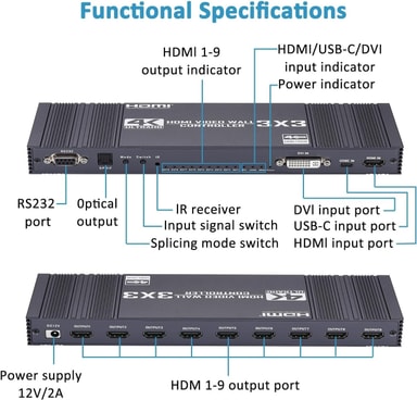 SpecifikationerType: 3x3 video wall controller / TV-vægprocessor