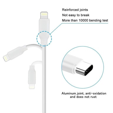 Fleksibelt og holdbart design: Holdbart TPU-overfladelag og tynde USB-C- og lynstik for let tilslutning.