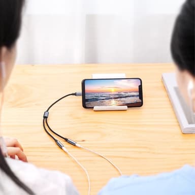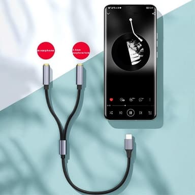 25 cm Type-C til 3,5 mm Audio Splitter Kabel Hovedtelefonadapter til Smartphone Computer【Alsidig tilslutning】 Type-C til dobbelt 3,5 mm lydadapter giver dig mulighed for at tilslutte to lydenheder til en enkelt Type-C-port【Premium Build】 Flettet kabeLæs mere om produktet
