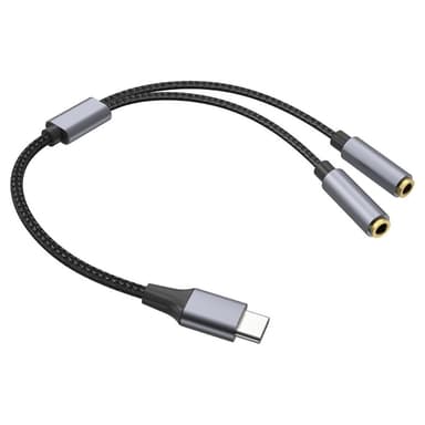 • 25 cm USB-C til 3,5 mm Audio Splitter Kabel Hovedtelefonadapter