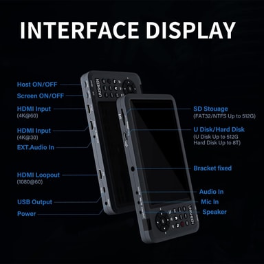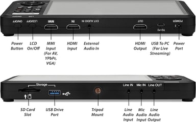 Dette produkt er en selvstændig HD-videooptagelsesboks med ekstra stor 7-tommers LCD-skærm, som gør det muligt at optage og digitalisere video fra HDMI, VGA, YPbPr, AV (Composite) og S-Video. Den understøtter 4K-indgang op til 30 fps og optager op til 1080p 60 fps i MP4-format med H.264-kodning. Enheden fungerer helt uden computer og er ideel til arkivering af både analoge og digitale videokilder.