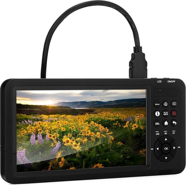 Ekstra stor 7" LCD-skærm – Giver tydelig realtidsforhåndsvisning med optagelsesstatus, opløsning og lydniveauer.