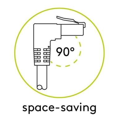 CAT-5e-netværkskabel med 90° RJ45-stik (uden snaplåsbeskyttelse) er en ideel løsning i trange rum.