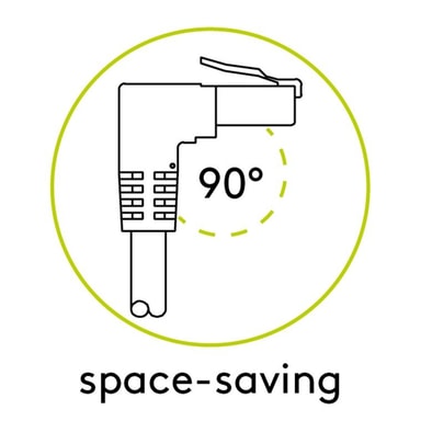 CAT-5e netværkskabel med 90° RJ45-stik er en ideel løsning til trange pladsforhold.