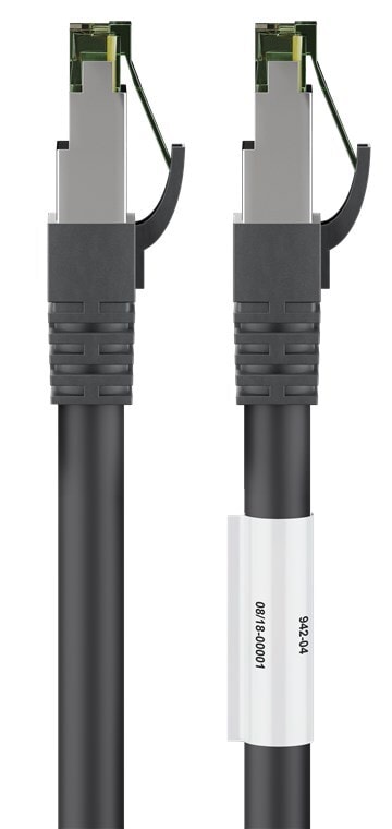 Hvert Goobay CAT 8.1-kabel op til 5 m testes 1:1 i kanalforbindelse og leveres med en målerapport og individuelt serienummer.