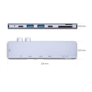 Denne USB-C-hub udvider din MacBook med en HDMI-port, en PD-port, en USB-C-port, 2 USB 3.0-porte og en SD/TF-kortlæser. Stabil dataoverførsel gør dit arbejde lettere.