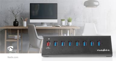 Nedis USB-hub | USB Micro-B Female | USB-A Female | 8-Port port(s) | QC3.0 / USB 3.2 Gen 1 | Strømforsyning / USB Drevet | 5 Gbps | 8x USB