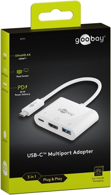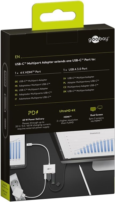 Funktion - USB-C™-adapter med flera portar lägger till en HDMI™- och en USB-A 3.0-port till en USB-C™-port.