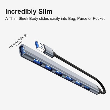 Synkroniser data med superhurtige hastigheder eller tilslut andet USB-udstyr med denne USB-hub, der kan forvandle en USB-port til hele 7 stikkontakter. Slankt design med høj varmebestandighed og lang levetid.