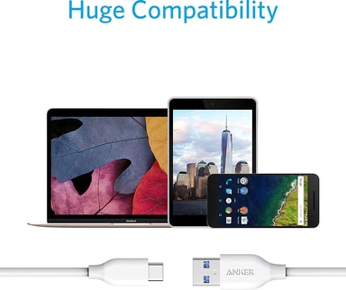 • Anker Powerline USB-C til USB 3.0 kabel 0,9m (hvid)
