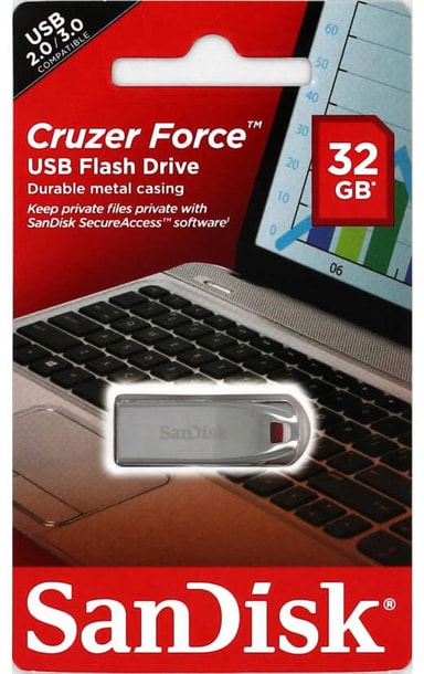 Sandisk Cruzer Force USB-sticken har et ultrakompakt letvægtsdesign, så du kan have den med på farten. Det hårdføre metalkabinet sikrer højere slidstyrke, mens SecureAccess 2 krypterer dine data for høj sikkerhed.Læs mere om produktet