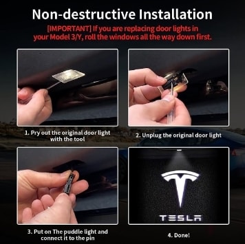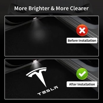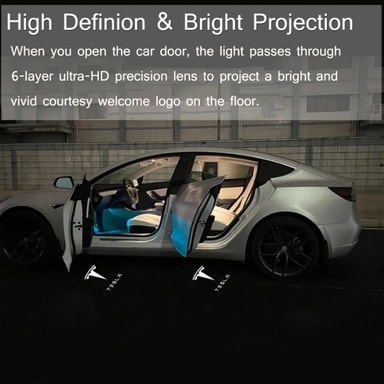 Dørlys til Tesla der giver en unik og stilfuld effekt ved at projicere logoet ned på vejen. Lamperne er en direkte erstatning til de originale moduler i for og bag dørene og er plug and play.