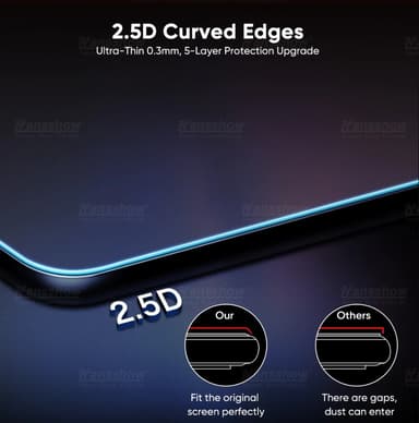 Glassene er nemme at montere og dækker begge skærme helt fra kant til kant, og forbliver permanent på plads men kan dog fjernes uden nogen rester.