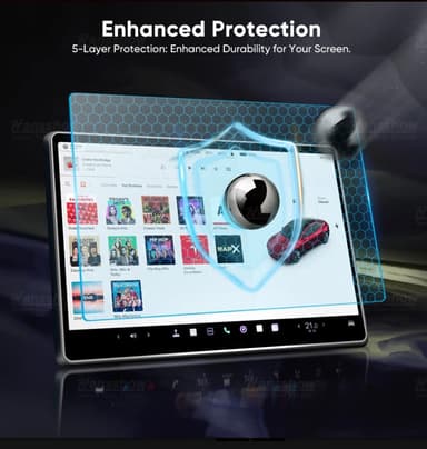 I dette sæt for du beskyttelse skærm til både den store skærm ved førersædet samt til skærmen ved bagsæderne. På den måde er begge dine skærme beskyttet.