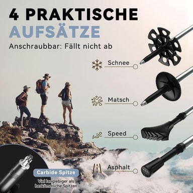 Alsidig udendørs ledsager: Denne 5-sektions aluminium vandrestav er en alsidig ledsager til alle dine udendørs aktiviteter. Uanset om du vandrer, trekker, backpacker eller bare tager en afslappet gåtur, giver denne stang den støtte og stabilitet, du har brug for til at navigere i forskellige terræner. Den justerbare højde giver dig mulighed for at tilpasse stangen til dine specifikke behov og præferencer. Gummigrebet sikrer et behageligt og sikkert hold, selv under våde eller glatte forhold. Stangens robuste aluminiumskonstruktion kan modstå strabadserne ved udendørs brug og giver pålidelig ydeevne i mange år fremover. Fra bjergstier til skovstier er denne vandrestav et vigtigt værktøj for enhver udendørs entusiast. Forbedre din vandreoplevelse og udforsk verden med selvtillid.