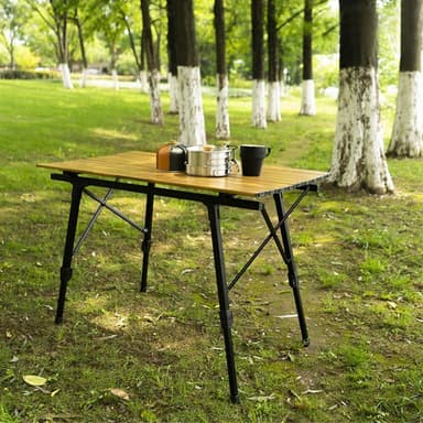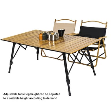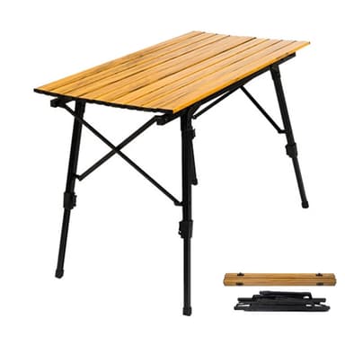 90x52cm Udendørs foldebord Trækorn Roll Up Top Aluminiumslegering Elevator Camping BordPerfekt til camping, glamping, picnic, strand, baghaver, BBQ, tailgating, RV-ture, landing, spillekort, gårdhavefest osv.En flad overflade til at placere dit komfuLæs mere om produktet