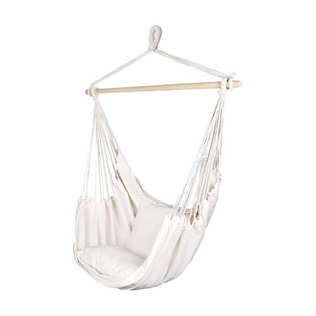 Hængegyngen er lavet af blødt bomuld og polyesterstof som er meget slidstærkt og slidstærkt. Gyngen er nem at hænge både indendørs og udendørs. Forkæl dig selv med behagelig afslapning i denne komfortable hængekøjestol.