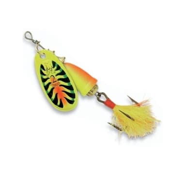 45° klingen i midten af ​​dybden løber 0,6 – 1,2 meterPatenteret 2-delt, bearbejdet messinghovedhus Raslende, frit drejende messing gearSkaft i rustfrit stålFås i glødende finish med malede metalblademønstre Udstyret med VMC® krog med teaser haleLæs mere om produktet