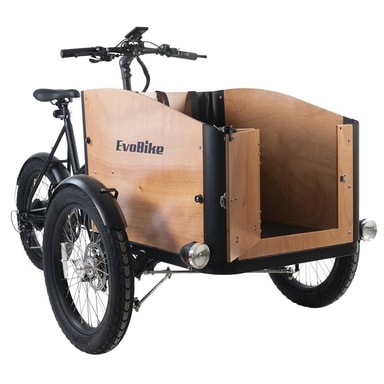 EvoBike Duo Cargo Box är den perfekta eldrivna lådcykeln för familjen. Med en kraftfull 250W borstlös hjälpmotor från välkända Bafang blir packning och uppförsbackar inte något problem!