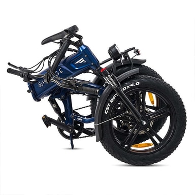Build • Hjul: CST 20x4″ punkterings-resistente aluminiumsfælge • Ramme: Sammenklappelig aluminium • Håndtag: Ergonomiske med håndstøtte • Ringeklokke: Klassisk mekanisk • Affjedring: Dobbelt (foran og midt) • Sadel: Sports komfortgel • Skærme: For og bag • Bagagebærer: Hygge bagbærer