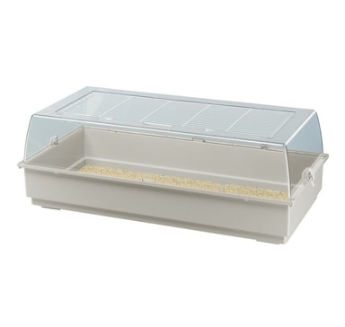 Maxi Duna Multy er meget rummelig, har en enkel form og er det ideelle hjem for hamstere, marsvin og kaniner. Den er meget stor - næsten en meter lang - og har et stort, gennemsigtigt plastiktag med et gitter på toppen, der kan åbnes.