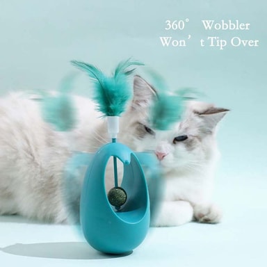 Engagerende interaktiv leg: Dette wobble tumbler kattelegetøj giver timevis af interaktiv sjov for din katteven. De uforudsigelige bevægelser og den lokkende katteurtbold stimulerer din kats naturlige jagtinstinkter og holder dem underholdt og engageret. Det er perfekt til solo leg eller interaktive sessioner med dig, hvilket fremmer motion og mental stimulering. Fjertilbehøret tilføjer et ekstra lag af spænding og opmuntrer din kat til at springe, jagte og slå til legetøjet. Dette legetøj er designet til at holde din kat aktiv og glad, reducere kedsomhed og forhindre destruktiv adfærd. Det er en fantastisk måde at knytte bånd til din kat og give dem den berigelse, de har brug for.