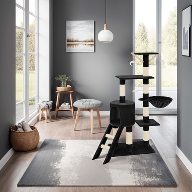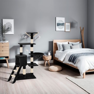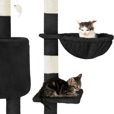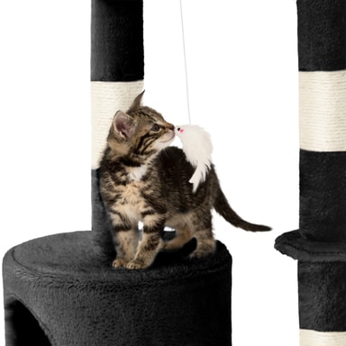 Kattetræ med flere etager, kattehus og kradsemuligheder