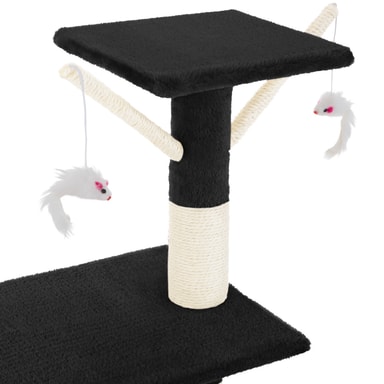 For at tilfredsstille kattens naturlige jagtinstinkter er kattetræet udstyret med tre legemus. To af dem er fastgjort til stænger under den øverste platform, og den tredje hænger centralt over liggemuligheden og kattehuset. Dette sikrer timer af sjov og aktivitet for din kat.